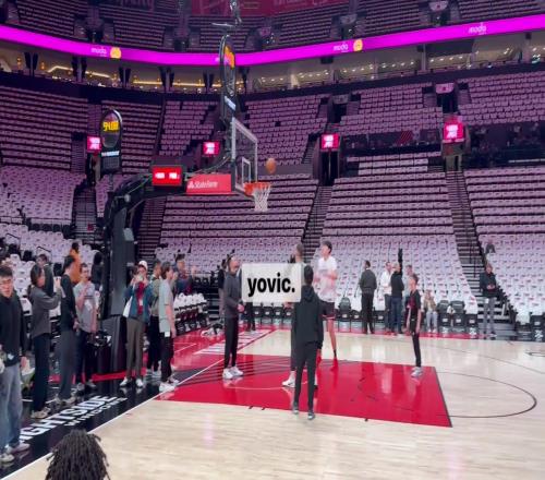 迎常规赛首秀!拓记:杨瀚森进场热身场边围满了媒体
